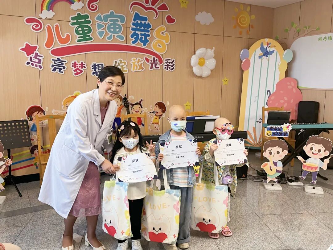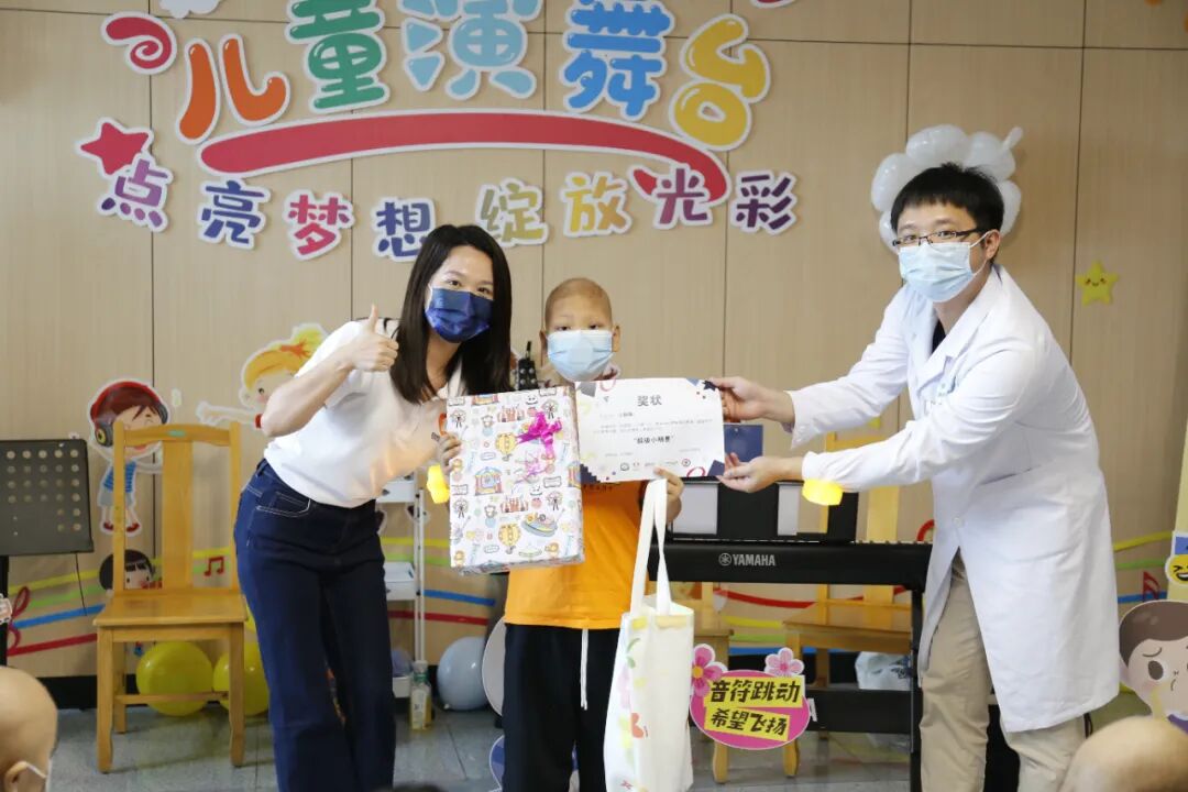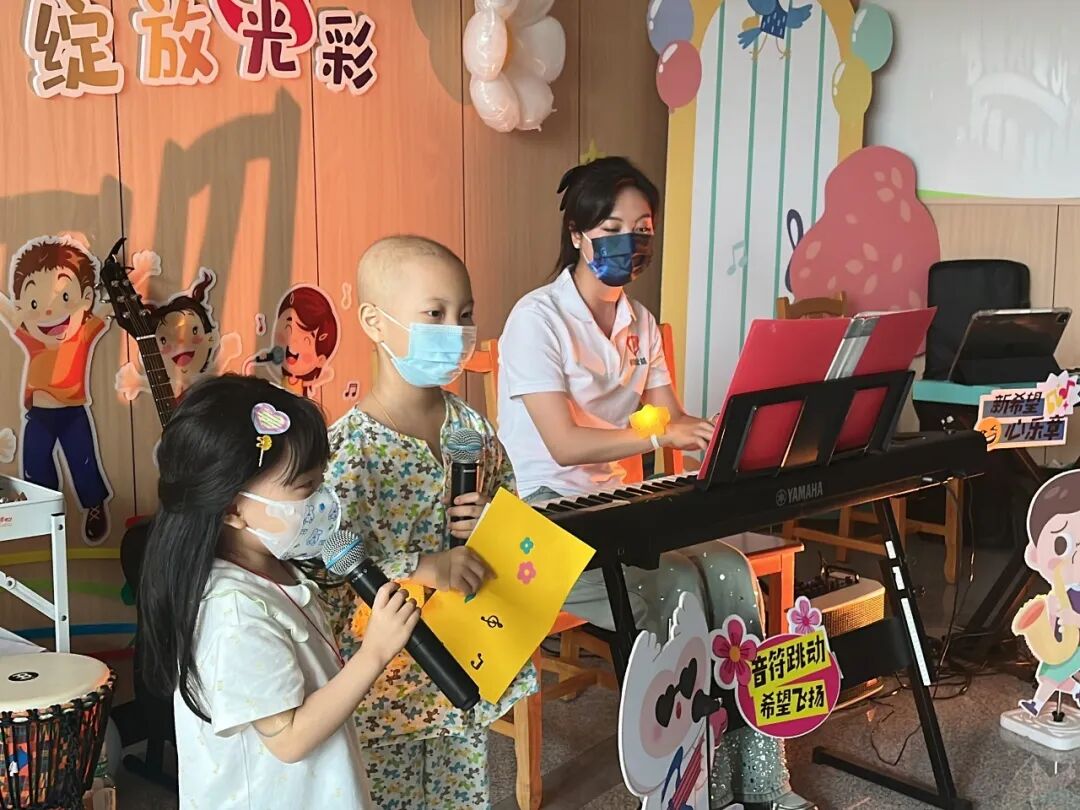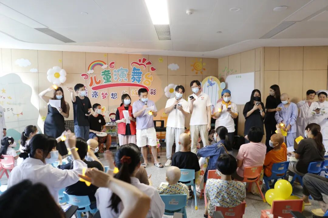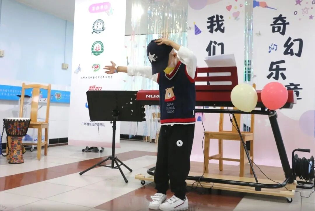 活动伊始,儿童医学中心主任、血液科主任周敦华教授上台致辞,向孩子们送上节日的祝福,作为花都院区启用后的首场儿童节活动,周主任表示,愿音乐如同新院区的阳光,照亮孩子们的康复之路,一同展望美好的生活。音乐会秉承着“人人可参与”的开放形式,鼓励每一位参与者表达自我。“我们拍拍手、我们跺跺脚,欢迎来到音乐王国……”在音乐治疗师与志愿者带领的《音乐王国》互动开场中,大家开始放松下来,投入到放松的音乐中。音乐会上,孩子们表演的曲目均由Ta们自主选择,音乐治疗师、与志愿者全程提供支持。即使身着病号服,也阻挡不了孩子们天真活泼、喜欢热闹和热爱音乐的天性,Ta们暂时忘却了病痛,展现出满满的生命力。台下的小观众们则握着星星灯,随节奏挥舞,用掌声和欢呼支持着台上的表演者。小主持人浠浠和茵茵搭档护士姐姐雪婷姐姐,为大家清晰报幕,展现了她们专业认真的一面。音乐治疗师张彦昕陪伴浩浩演唱热门电影主题曲《就是哪吒》,演绎“我命由我不由天”的精神。能歌善舞的小妍带来舞蹈《问题小孩》,歌曲《爱要坦坦荡荡》,在舞台上,她仍然表现得游刃有余,两位小朋友也即兴加入伴舞中。主持人茵茵弹奏起《特别的人》,这是她很喜欢的歌曲。在活动前,她与音乐治疗师一起认真练习。还有小乐手小振弹奏《孤独患者》,有了音乐与爱的陪伴,我们都不再孤独。王智轩医生深情演唱《love song》《至少还有你》,现场的灯海为他点亮。易娱公益志愿者吴梅钢琴演奏,小朋友也自信加入合唱~公益伙伴齐声唱响《海阔天空》,一位孩子的父亲也参与合唱:“原谅我这一生不羁放纵爱自由”,此时的歌词传递着更厚重的祝福。音乐会以一曲深情的《月亮代表我的心》结尾,医院领导、科室医护人员和公益伙伴一起大合唱,琴声、歌声和笑声交织在一起,成为难忘的回忆。看,小朋友给大家比心啦!每一位参与表演的孩子,都收到“超级小明星”的奖状,还有丰富的奖品和礼包,拍照时,脸上洋溢着喜悦与自豪,对Ta们来说,这注定是一个快乐又难忘的儿童节!这场音乐会不仅是节日庆典,更是碧心公益携手广州音乐治疗师团队在儿科一区、儿科六区、南院儿童造血干细胞移植科开展“病房中的音乐治疗”项目成果的呈现。自2023年项目启动以来,音乐治疗师团队通过聆听音乐、歌曲创作、乐器演奏等多元化干预,为患儿开展优质的音乐治疗,缓解恐惧、焦虑或抑郁等心理压力。2024年 孙逸仙纪念医院儿科一区“拥抱你2024”新年音乐会2024年 孙逸仙纪念医院儿科一区“闪亮的我”六一音乐会在音乐会上,孩子们可以随时跟着音乐歌唱、舞动,展现积极的自我,增强自信心。患儿、家属、医护人员、公益志愿伙伴也能在其中,感受到安全、快乐和融洽的社交氛围。“茵茵昨天好开心,真心感谢碧心公益所有哥哥姐姐们,是你们让孩子们在这枯燥、乏味艰辛的治疗路上多了许多温暖开心难忘的回忆。”音乐会小主持人茵茵的妈妈向我们表达了感谢。在此,祝福孩子们六一儿童节快乐!早日康复!让歌声留住互相连接、充满希望的美好部分!