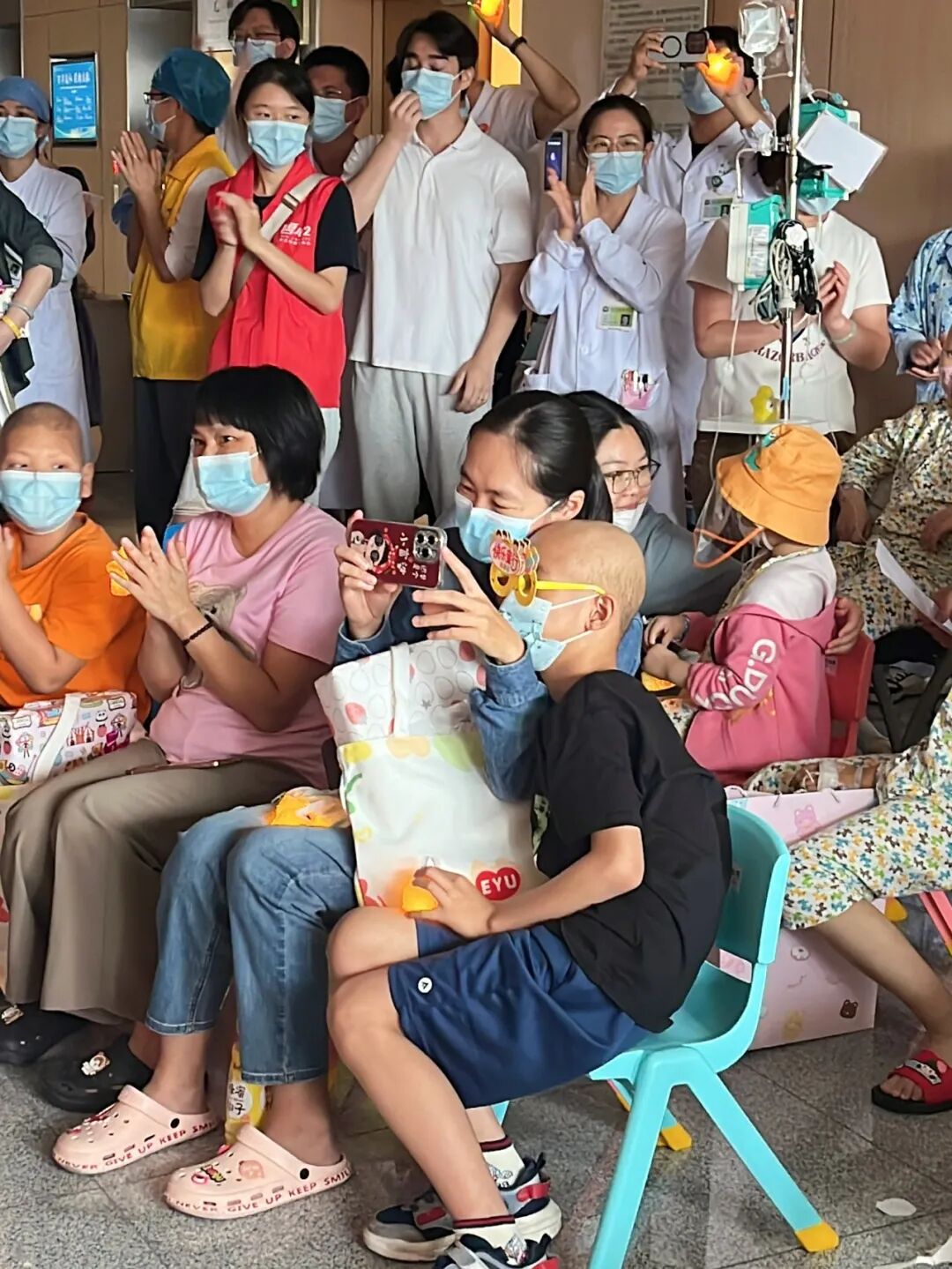 这场特殊而温暖的音乐会,主持、演唱、弹奏的主角皆是正在接受治疗的病房小勇士们。在病区的小舞台上,小勇士、家属、医护团队和公益伙伴们展现着不同的风采,我们以音乐为媒介,搭建了一座传递爱、勇气与希望的桥梁,互相陪伴、互相支持,在音乐和彼此的连接中汲取力量。本次音乐会由碧心公益、广州音乐治疗师团队联合中山大学孙逸仙纪念医院医学教育基金会、中山大学孙逸仙纪念医院儿科血液肿瘤专科青年文明号、易娱公益基金会、广州金丝带、天智爱心公益促进会共同举办。医院党委书记杨建林,副院长刘超,总会计师、医院基金会副理事长李彩霞,秘书长王薇,党群工作部主任欧阳霞等院领导莅临支持活动。
